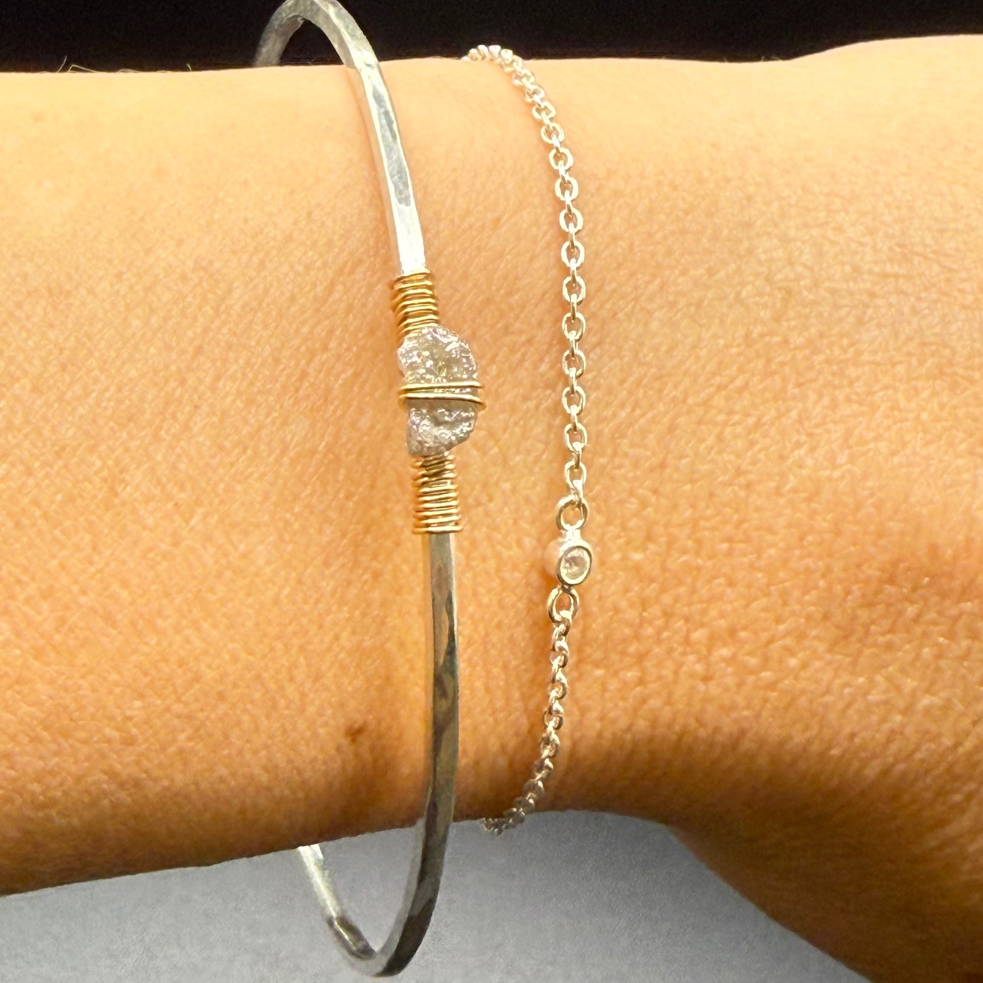 Hammered Bangle with Uncut Gray Diamond