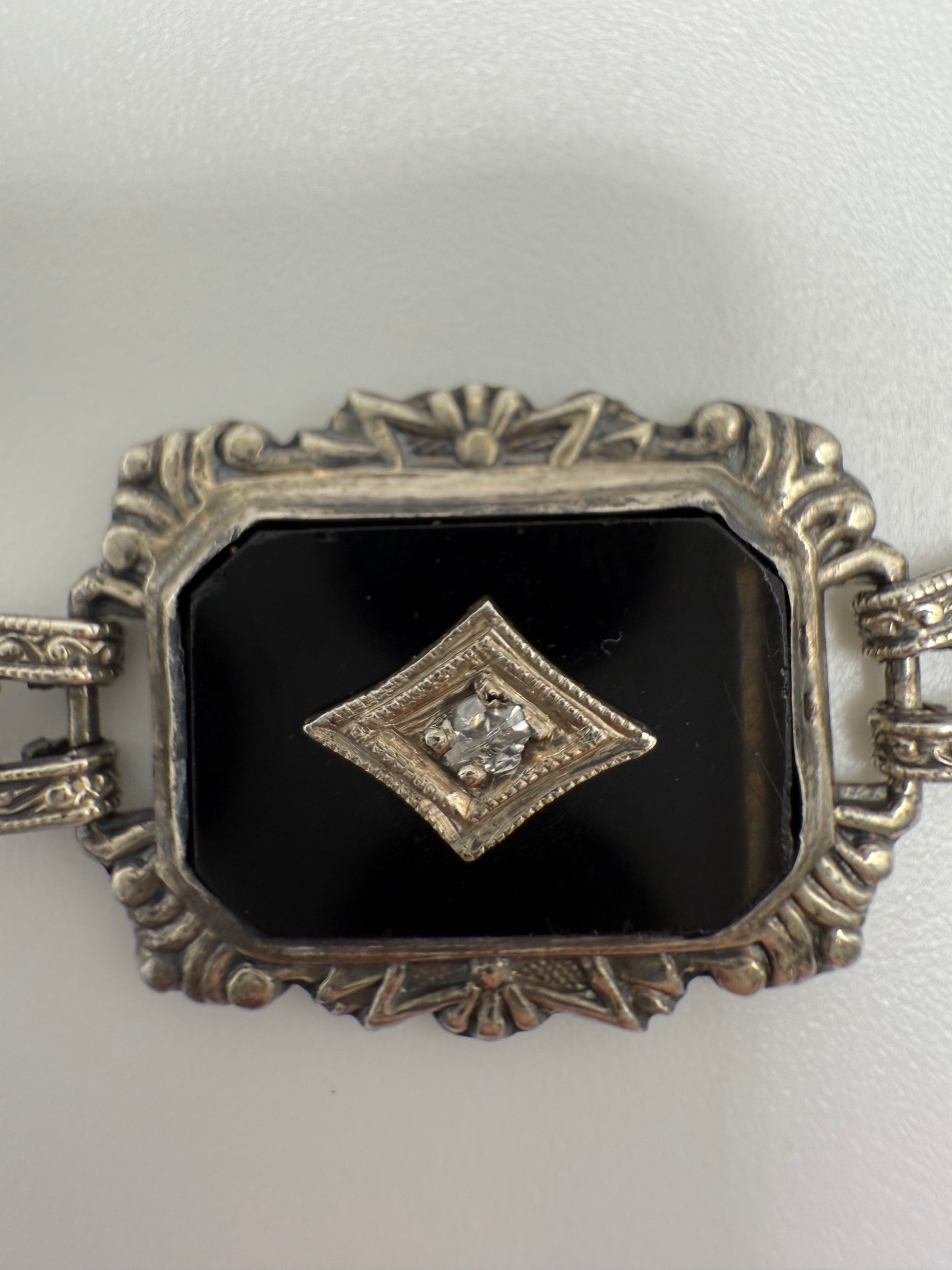 Vintage 1920's Art Deco Sterling, Onyx and Diamond Set